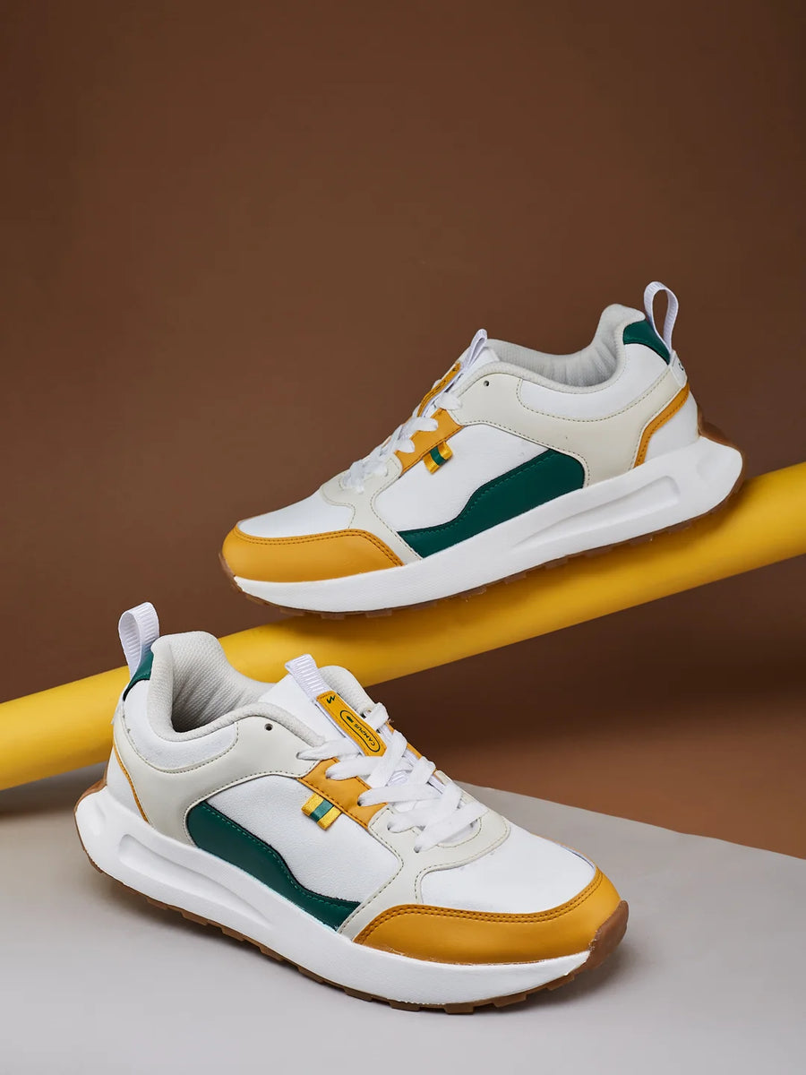 Step out in striking contrast with the Campus PASSO Men’s Sneakers in White and Mustard — the perfect mix of crisp minimalism and a pop of bold energy. The PU upper gives a smooth, premium finish, while the EVA and TPR sole keeps every step light yet steady. Add in the anti-slip sole design, and you’ve got a sneaker that moves as confidently as it looks. With the ultra-plush Bubble Yoga Max Insole cradling your foot, comfort becomes an all-day affair. With this, you've got a pair that's just perfect for making a sharp, smart style statement.